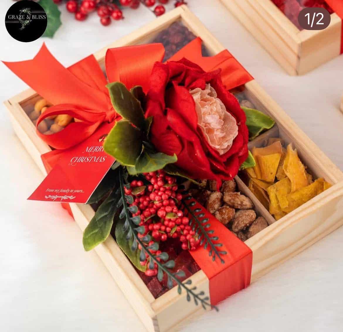 Celebrate Christmas with the Graze & Bliss Luxury Wooden 9 Compartment Snack Box